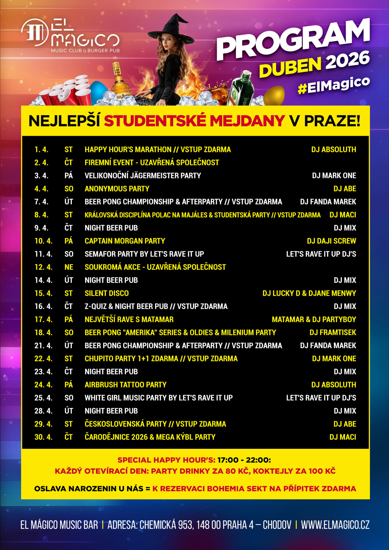 Nejlepší studentské mejdany v Praze a jedinečné tématické akce po celý rok!