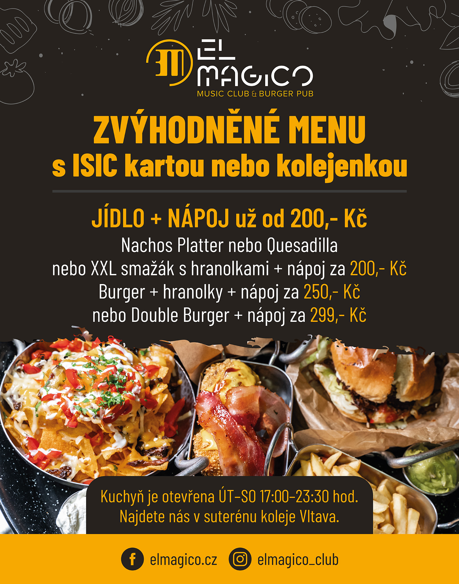 U nás si vychutnáš skvělé drinky, poctivé burgery a zažiješ večery plné hudby, tématických akcí, kvízů a beerpongových turnajů. Ať už jdeš za kulturou, přáteli nebo jen na něco dobrého, v El Mágicu najdeš ten správný vibe.